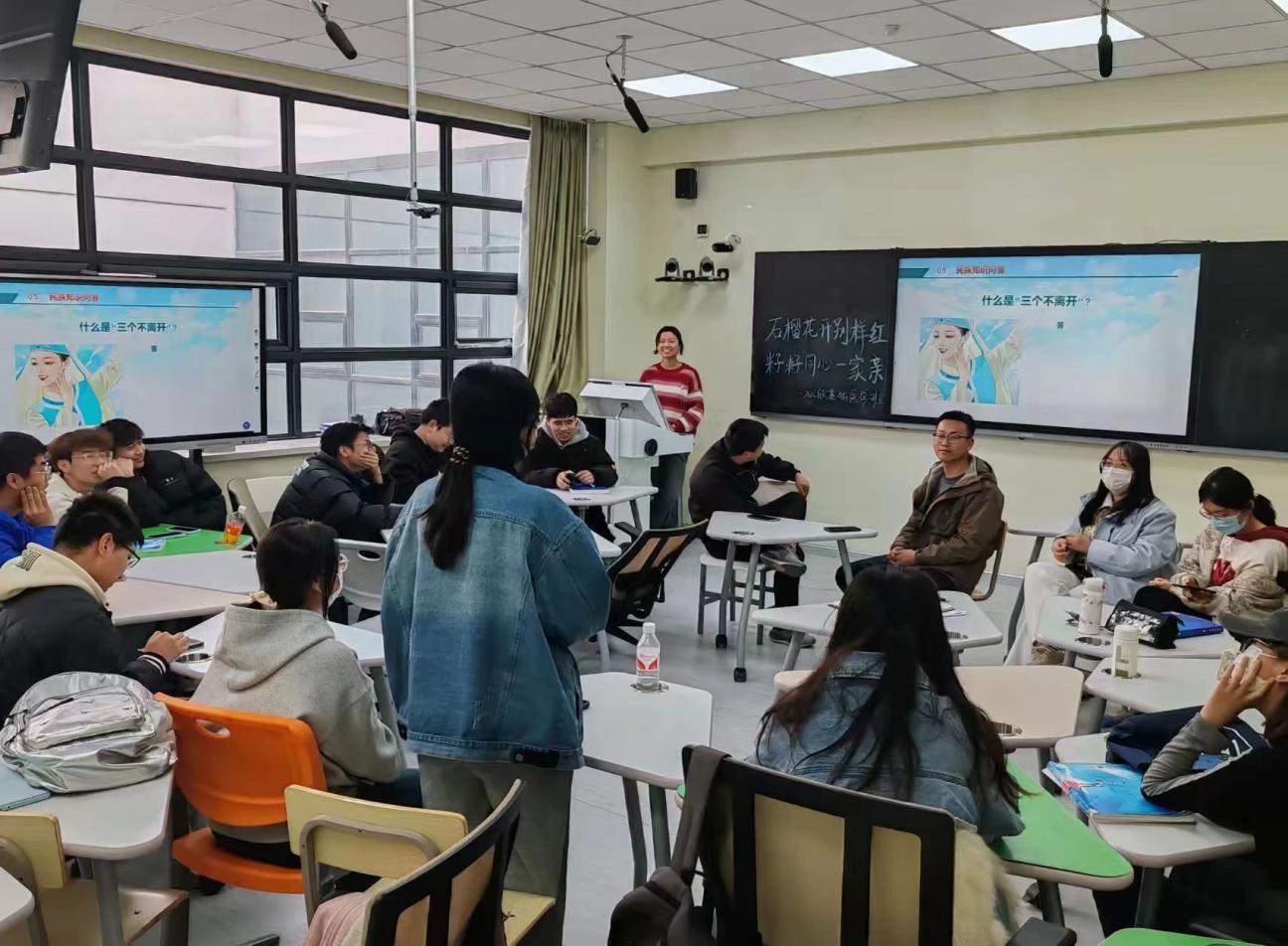 主题班会分为五个部分,包括认识民族团结、民族风采展示、你画我猜互动小游戏、合唱《爱我中华》和民族知识问答五个环节。班会伊始,大家通过视频资料,学习了解了我国各民族在漫长历史进程中相互依存、共同发展的紧密关系,以及民族团结对国家稳定、社会发展的重大意义。来自回族、彝族、哈尼族等三个民族的三位同学结合PPT讲解,先后展示了本民族独特的文化魅力,让同学们对不同民族文化有了更加深入的了解。同学们分组参与了你画我猜互动小游戏,通过肢体动作和简单绘画,形象地传递民族名称、特色习俗等词汇,妙趣横生的互动引得现场笑声不断。主持人围绕班会讲解内容,组织大家开展了激烈的知识竞答,激发了同学们学习民族团结知识的热情,巩固了班会学习成果。最后,班会在大家齐唱《爱我中华》中圆满结束。同学们真挚、热烈的歌声唱出了对伟大祖国的热爱,表达了愿为民族团结贡献力量的决心。