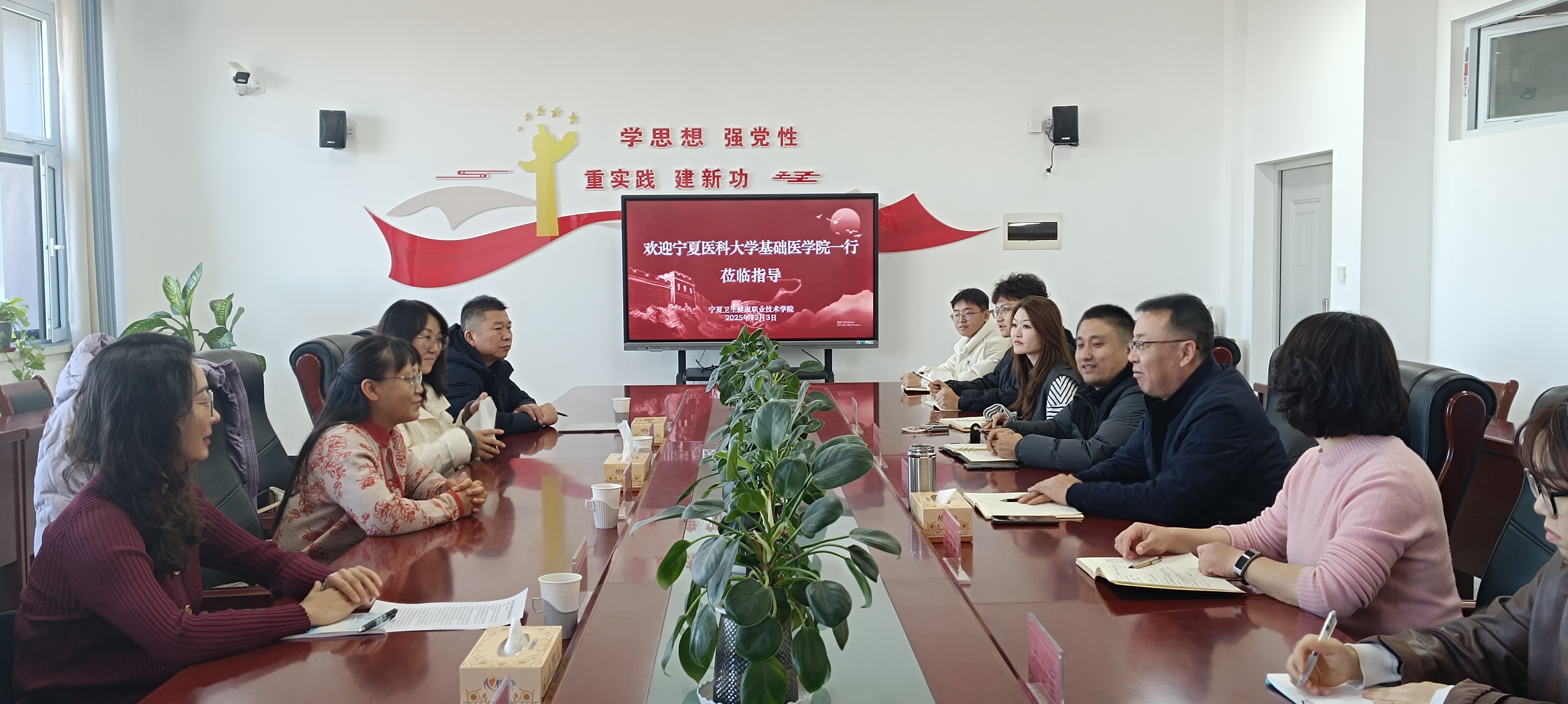12月3日,基础医学院党委书记张艳丽、专职组织员李菲、副院长党洁及学工办负责人一行前往宁夏卫生健康职业技术学院,开展访企拓岗专项活动。宁夏卫生健康职业技术学院领导班子成员、相关部门负责人及十大信誉毕业生代表一同参会。