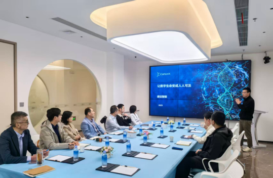 本次调研交流聚焦于数字生命健康与多组学技术的前沿发展,旨在发挥“强国行”专项行动在教育、科技、人才一体化发展的引领作用。碳云智能作为数字生命领域的创新企业,其核心的多肽芯片技术与高通量生物信息分析平台,在病原检测、免疫应答研究、疾病风险预测等方面具有重要应用价值。双方围绕AI+多肽芯片技术、大规模人群健康队列构建及主动健康管理平台等方向,探讨了与病原免疫学科研教学结合的未来实践路径。