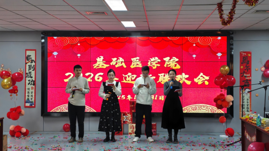 为丰富教职工文化生活,增强团队凝聚力,以昂扬姿态迎接新年,12月31日,基础医学院分工会在雁湖校区举办了“基”情飞扬,“医”趣无限——2025年分工会系列活动及2026年迎新联欢会。活动分两个阶段进行,全程氛围热烈、精彩纷呈,充分展现了基础医学院教职工团结协作、奋发向上的精神风貌。