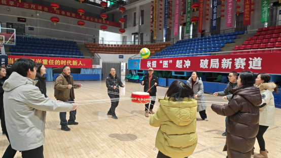 当天中午,雁湖校区体育馆内欢声笑语,热闹非凡。活动在基础医学院党委书记张艳丽的热情主持中拉开帷幕,校工会主席马晓东亲临现场并致辞。他代表校工会向全体教职工致以新年问候,并对基础医学院分工会的精心组织表示肯定,希望教职工们在活动中放松身心、增进交流。本次趣味活动设置了有奖知识问答、同心鼓、动力火车、套圈、螃蟹赛跑、翻纸杯六大项目,兼具知识性、趣味性、协作性和竞技性。知识问答环节巧妙融入医学特色与人文知识,既富趣味又具专业内涵。在“同心鼓”环节,各小组齐心协力控制节奏,展现了高度默契;“动力火车”和“螃蟹赛跑”中,队员们步伐一致、配合紧密,赛场边加油声此起彼伏;“套圈”和“翻纸杯”项目则考验耐心与技巧,不少教职工身手敏捷、屡创佳绩。全体教职工全情投入,在轻松愉快的氛围中强化了团队协作精神,也收获了运动的快乐。