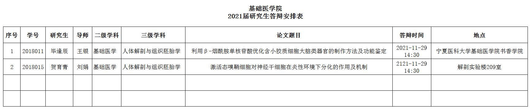基础医学院2021年秋季研究生答辩安排