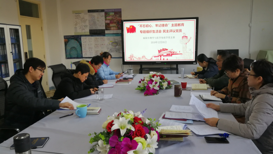 2019年12月5日上午,病原生物学与医学免疫学党支部按照学校党委的统一安排部署,在基础医学院206室开展了“不忘初心、牢记使命”主题教育专题组织生活会及民主评议党员活动,支部全体在岗党员参加了本次活动。徐涛副院长代表基础医学院党委参加了此次活动,同时邀请了系部民主党派教师代表杨志伟主任和群众教师代表王大军副主任、张炜老师共同参加了本次活动。全体党员本着实事求是,客观公正的态度认真开展自评和评议。张艳丽书记代表支部班子做了对照检查汇报和自我剖析,强调发扬“不忘初心、牢记使命”主题教育的精神,专注于立德树人和教书育人。然后每位党员同志依次开展了自我批评,党员老师间真诚地进行了批评,民主党派教师代表及群众教师代表依次对党员教师提出批评及中肯的建议。
