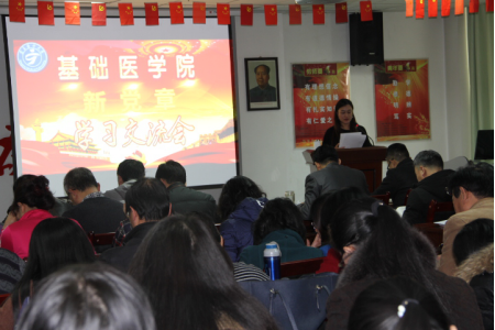 12月13日下午,基础医学院党委召开了学习宣传贯彻十九大精神专题活动,此次活动包括交流发言、党章修订案学习、专题党课等形式。全院教职工和学生党员参加了学习会。