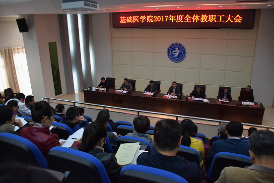 为了进一步统一思想、振奋精神、务实创新,高质量的完成本学期各项工作,以良好的状态喜迎十九大的胜利召开,基础医学院于10月11日下午在学校行政楼二楼阶梯会议室召开全院职工大会,会议由胡建国常务副院长主持。学院全体教师参加了大会。