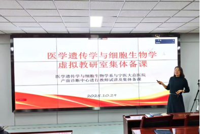 活动中,医学遗传学与细胞生物学系主任王娅娜教授详细讲解了医学遗传学课程的教学目标、内容体系及教学改革思路,为课程融合筑牢基础。宁医大总医院产前诊断中心李美娟医生就“临床中遗传病的诊断与治疗”进行试讲,通过真实病例生动呈现遗传病诊断流程、分子检测技术及临床干预方法,展示了临床遗传学的教学价值。