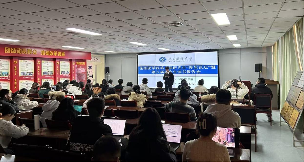 为着力提升研究生培养质量,培育基础学科拔尖创新人才,基础医学院于2025年12月30日在厚生楼党员之家成功举办了第三届研究生“厚生论坛”暨第八届研究生读书报告会。本届活动旨在激发研究生的科学创新思维。活动内容紧密结合基础医学研究,为持续强化科研学习的丰富性与实践性,培养德智体美劳全面发展、兼具深厚专业底蕴的高层次人才提供了重要舞台。