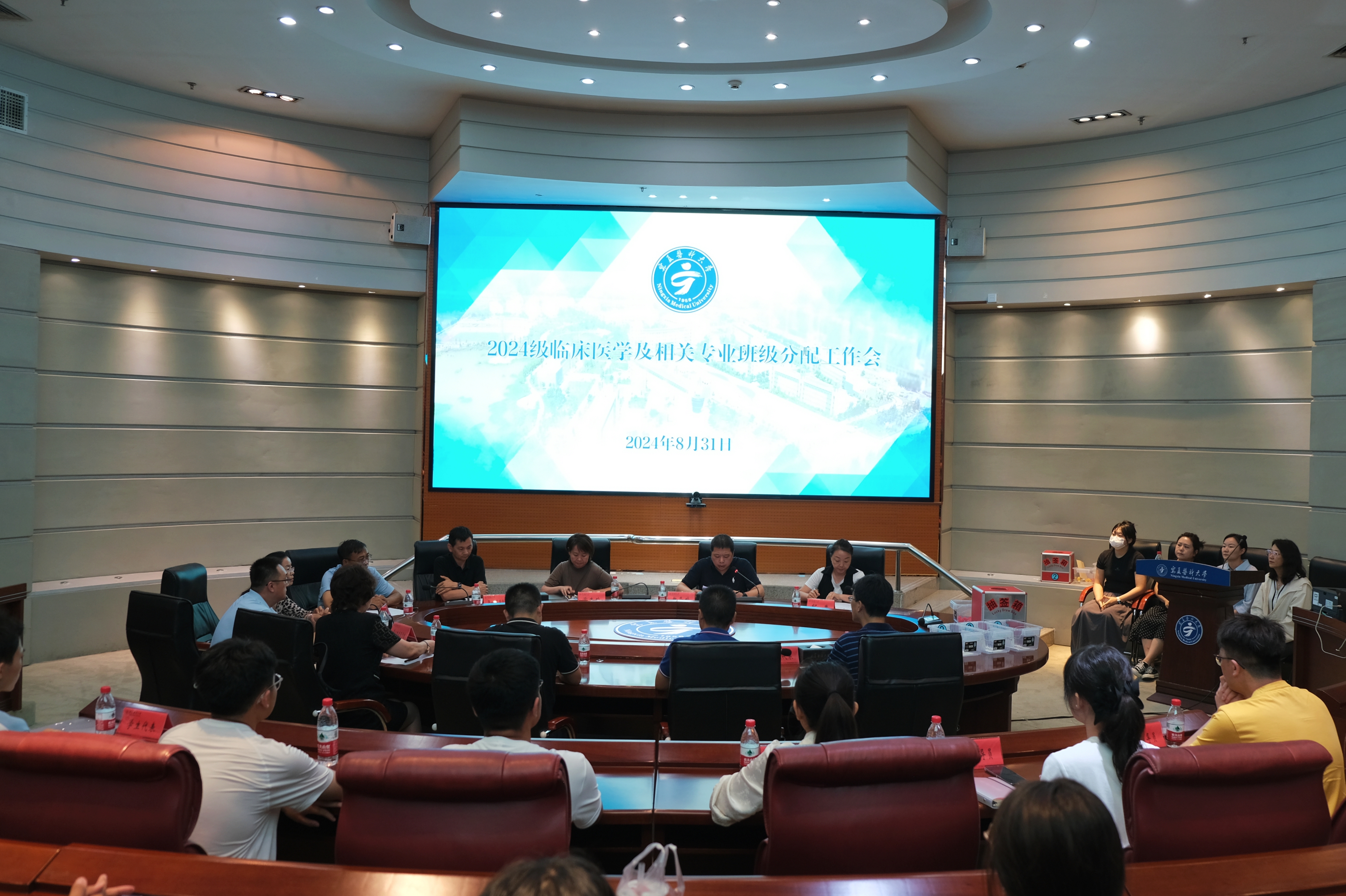 8月31日下午,学校召开2024级临床医学及相关专业班级分配工作会。学校纪委(监察专员办公室)、学生处(党委学生工作部)、第一、二、三临床医学院负责人及抽签代表、辅导员代表、学生家长代表及学生代表参与会议。会议由教务处副处长唐利龙主持。