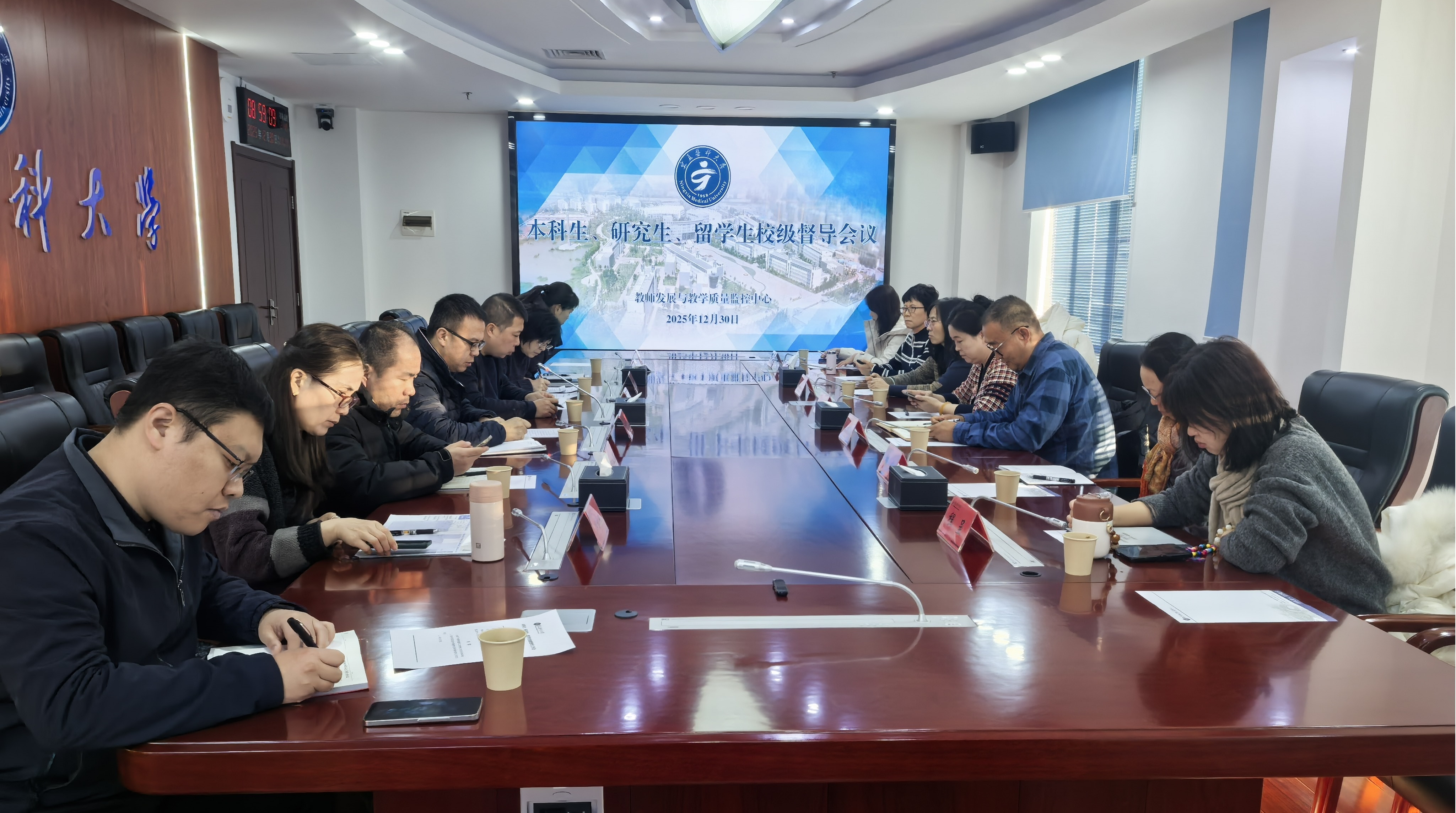 12月30日,学校在正德楼601会议室召开了2025年度校级督导工作会议。教师发展与教学质量监控中心、研究生院(研究生工作部)及国际教育学院负责人,本科生、研究生及留学生校级督导代表参加会议。