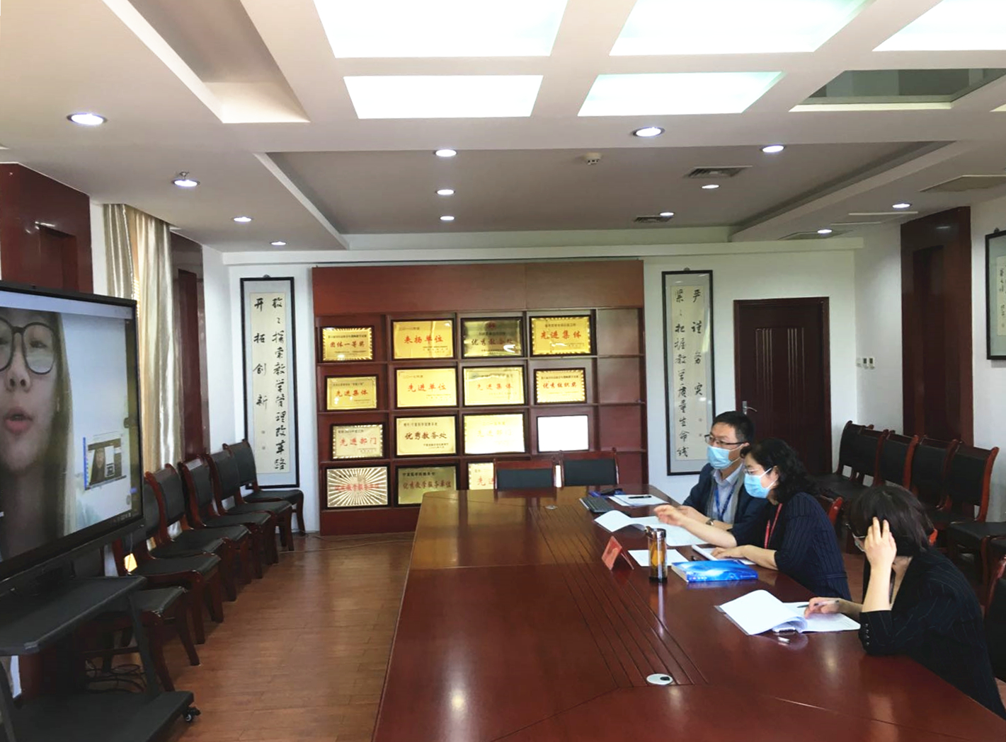 5月20日,学校副校长郝银菊在雁湖校区正德楼322会议室,通过钉钉直播平台、腾讯会议进入线上课程听课看课,了解学校教师在线教学及学生学习情况。