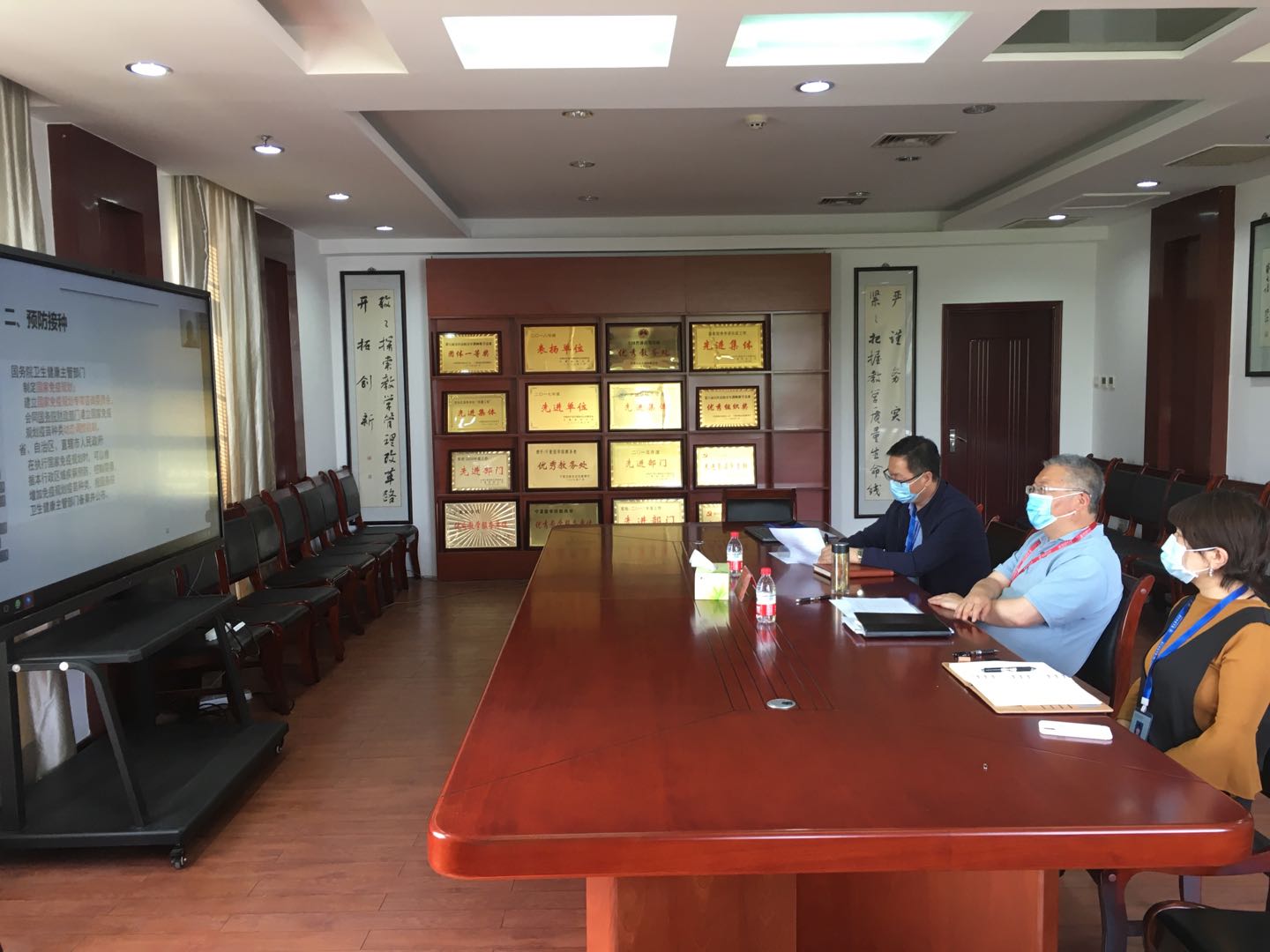 朱建华进入马克思主义学院辛林老师讲授的《卫生法学》及李宝凤老师讲授的《中国近代史纲要》线上直播课堂,与同学们一同听课。