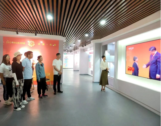 下午,实践团成员们来到了利通区金星镇金花园社区,“沿着总书记足迹,感悟思想伟力”。大家先后参观了兰花芬芳志愿服务中心展览馆、金花园社区党群服务中心、社区广场,现场感受习近平总书记视察金花园社区时的热烈场面,重温习近平总书记视察时的深情寄语,深切感悟习近平新时代中国特色社会主义思想所蕴含的坚定理想信念、真挚为民情怀、高度历史自信、无畏担当精神。通过讲解员的精彩讲解和一件件实物、一张张图片、一组组数据、一块块奖牌,学习感悟兰花志愿服务队几十年如一日,坚守“行胜于言”和“奉献、友爱、互助、进步”的志愿服务精神;学习社区党支部凝聚各族群众团结和睦、手足相亲、守望相助,唱响民族团结进步主旋律, 像石榴籽紧紧抱在一起,进一步铸牢中华民族共同体意识,以实际行动共建美好家园。