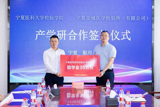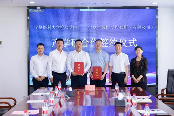 5月16日下午,检验学院与宁夏金域医学检验所(有限公司)产学研合作协议签约仪式在雁湖校区举行。学校党委常委、副校长张立杰,金域医学集团总裁助理、华中区域总经理谷晓辉,宁夏医院协会临检专委会主任委员、澳门十大信誉好的网站总医院医学实验中心副主任李锋,宁夏金域医学检验所(有限公司)总经理张其润一行,学校科学技术处、教务处、对外合作交流处负责人和检验学院师生代表参加了签约仪式。