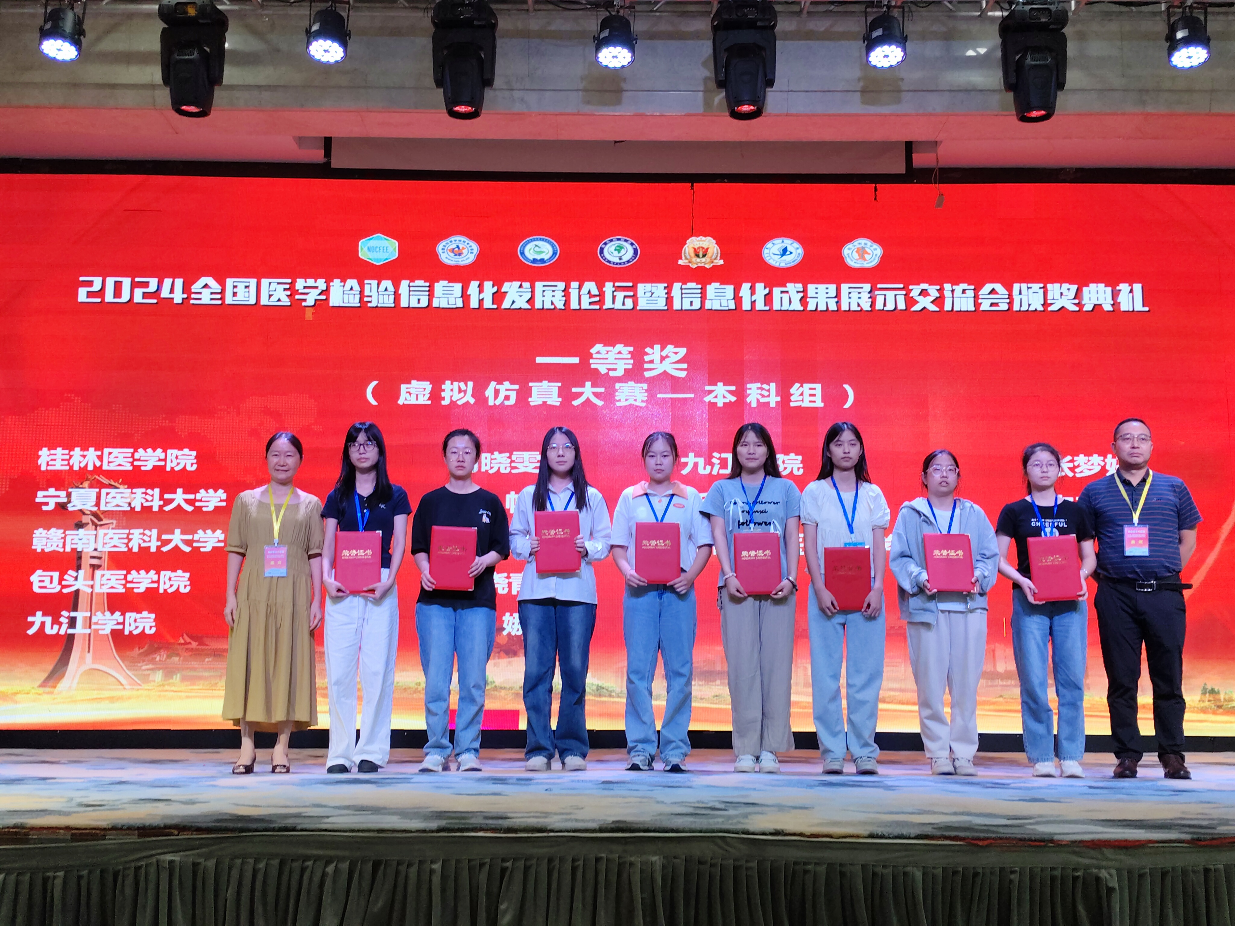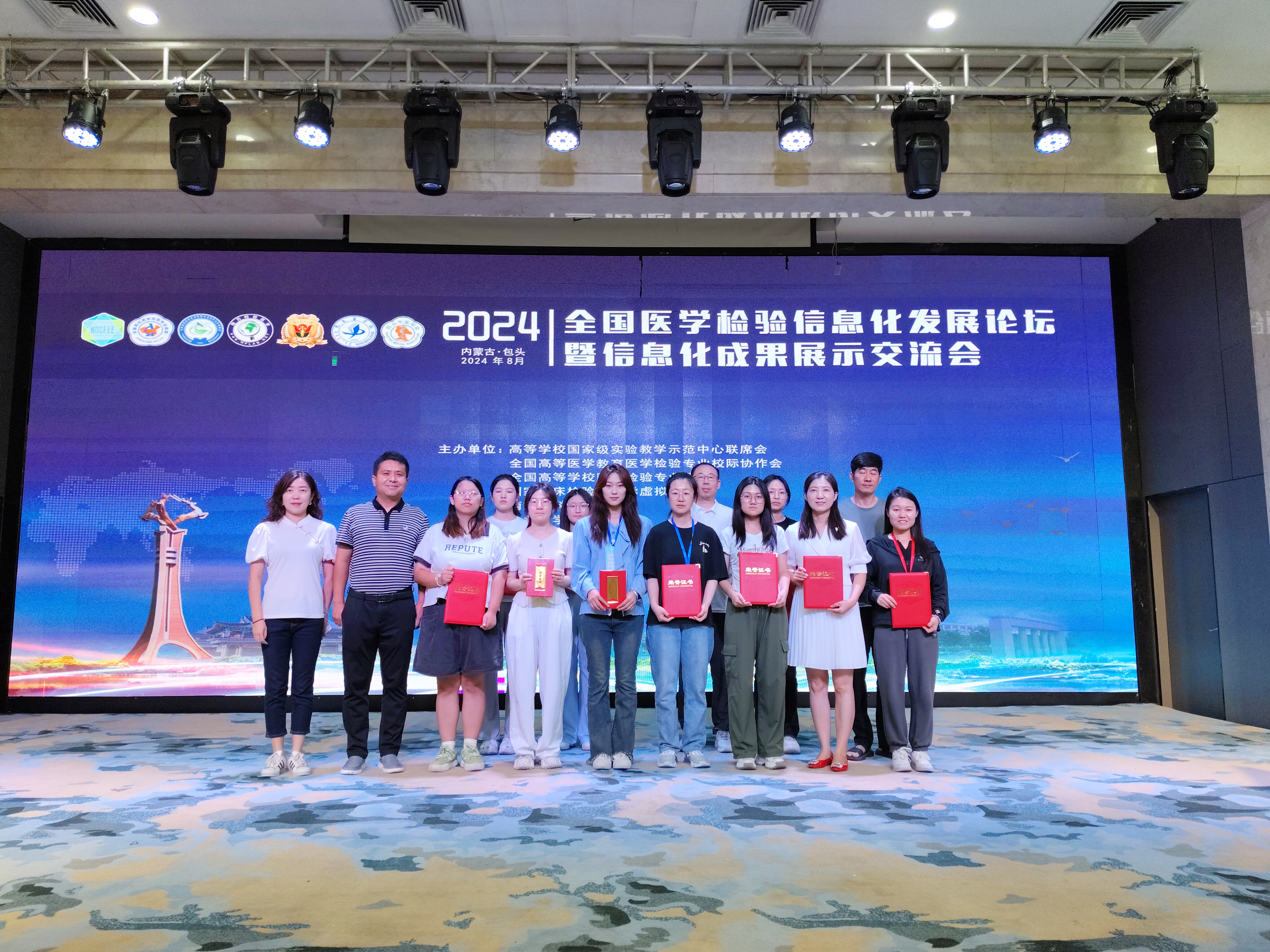8月17日上午,实践团成员参加了在包头举办的2024年全国医学检验信息化发展论坛暨信息化成果展示交流会,全国共有70余所高校参加。经过激烈角逐,实践团学生荣获虚拟仿真大赛一等奖1项、二等奖2项、三等奖1项,荣获形态学大赛三等奖4项;实践团教师荣获教师金微课大赛一等奖1项,三等奖1项。通过参加此次比赛,强化了院校交流,提高学生形态辨识能力以及临床工作能力,提升教师的医学检验信息化教学能力。