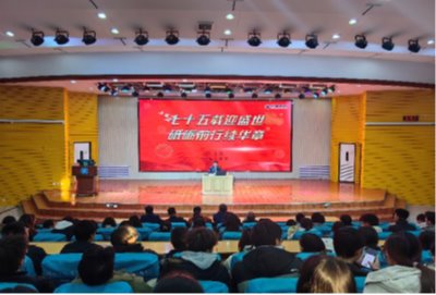张立杰以“七十五载迎盛世,砥砺前行续华章”的主题,详细阐述了新中国成立75周年以来,我国经济持续健康发展、民主之路越走越宽、文化发展更加繁荣、人民生活极大改善、美丽中国焕发新颜等五个方面所取得的持续发展与显著成就。他通过生动的叙述与丰富的实例,引领同学们回顾光辉奋斗历程,重走来时峥嵘岁月,勉励大家不畏风吹雨淋,勇踏时代大浪,扬青春之帆,怀济世之情。