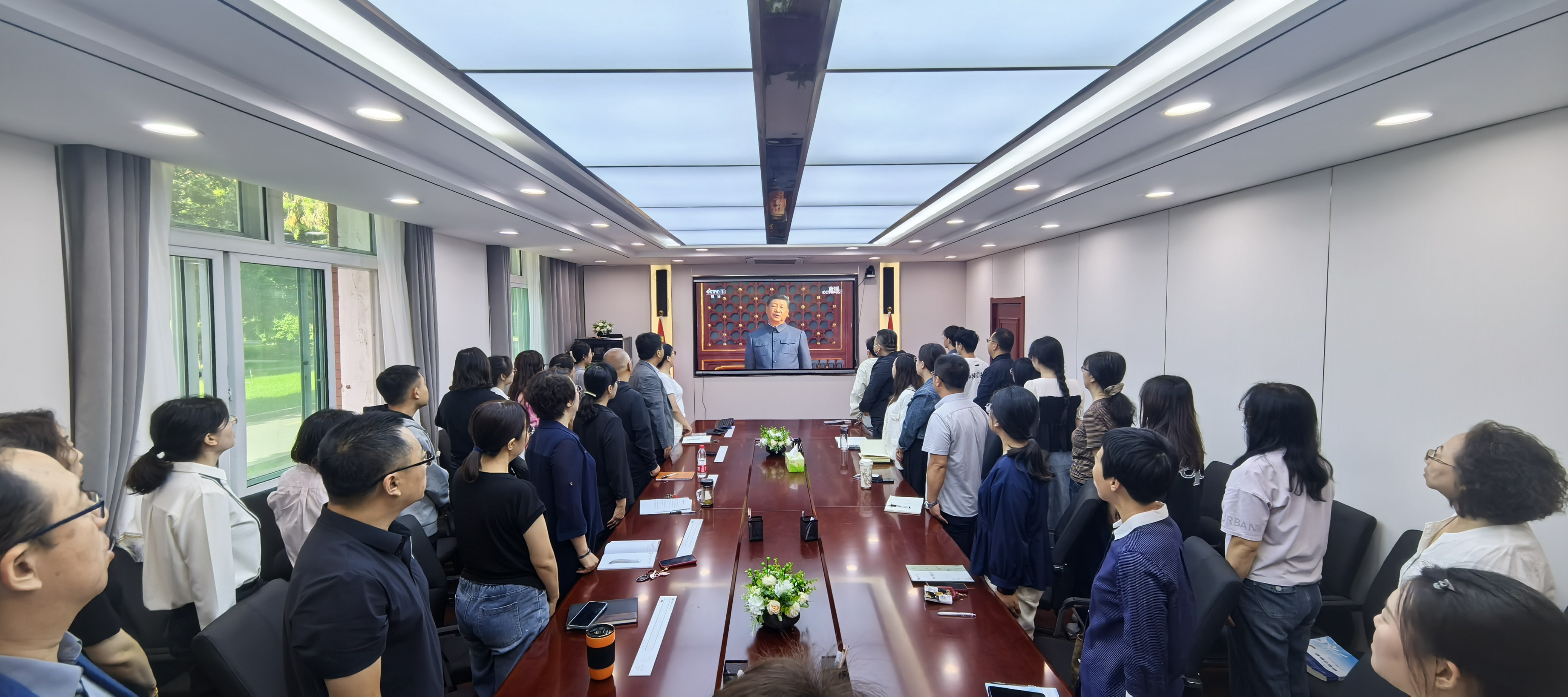 9月3日,检验学院师生集中观看纪念中国人民抗日战争暨世界反法西斯战争胜利80周年大会实况转播。(邓涛 文/图