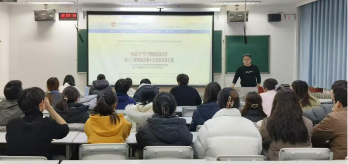 学院本专科学生党支部于2024年12月30日,在双怡校区图书馆301教室,传达学习自治区党委十三届十次全体会议精神。会议由支部书记李龙主持。