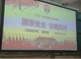 在第七个国家安全日到来之际,2022年4月10日,口腔医学院组织雁湖校区和双怡校区全体本专科学生,以年级为单位开展了以“国家安全,你我同行”为主题的晚点名活动。