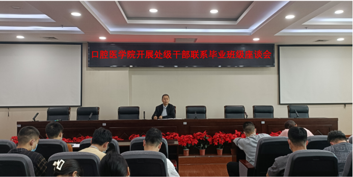 5月11日,我院在口腔医院第二会议室开展处级干部联系毕业班级座谈会,学院党委书记贾立勤受邀参加会议。