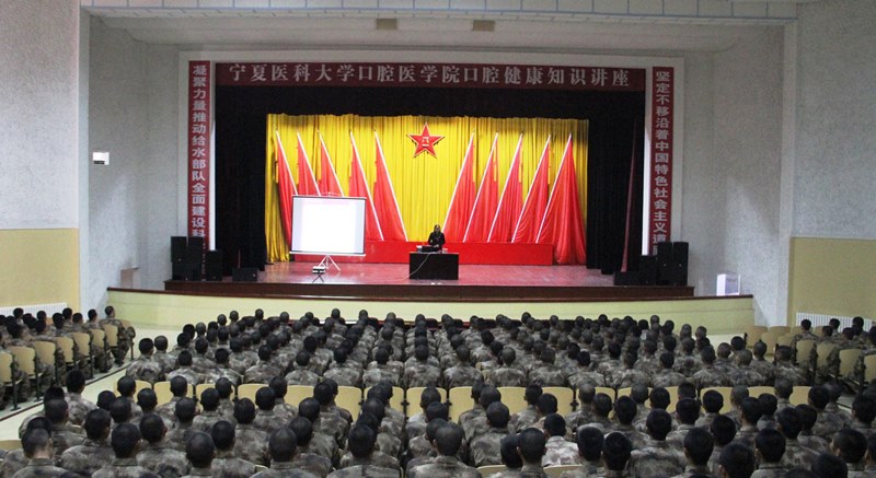 11月6日,学校口腔医学专家、工会委员和青年志愿者一行19人来到宁夏给水团为军营战士开展口腔保健知识讲座和义诊活动。活动中,十大信誉2013年自治区“9·10”教育奖章获得者、口腔医学院刘英教授为给水团500名官兵做了题为《爱牙、健齿与强身》的专题报告,报告从三个部分通过图文并茂的形式向战士们详实讲解了口腔保健的相关知识,并在随后开展的口腔普诊中,为战士们进行了“一对一”的口腔普查,并出具了针对个人口腔普查的诊疗报告,活动受到了战士们欢迎。