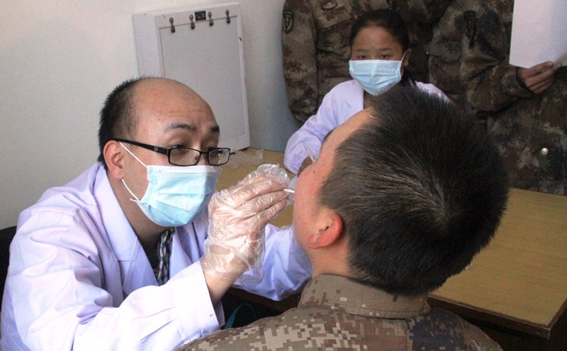 牛文辉老师为官兵检查口腔情况