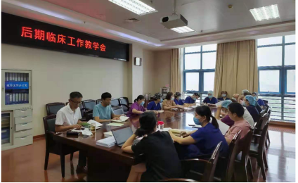 8月11日下午17:00,口腔医学院召开后期临床教学工作会议,会议由主管教学副院长乔光伟主持,院长黄永清、总院教育处苏先老师及各学系主任、临床科室主任(负责人)及教学秘书参会。