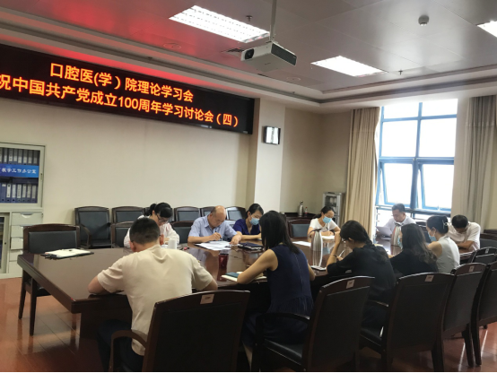 2021年8月17日下午,口腔医(学)院召开理论学习(扩大)会,学习研讨习近平总书记在庆祝中国共产党成立100周年大会上的重要讲话精神(系列四),“两院”班子成员、支部书记、各科室及学系负责人参加了会议,院党委(党总支)书记贾立勤主持会议。