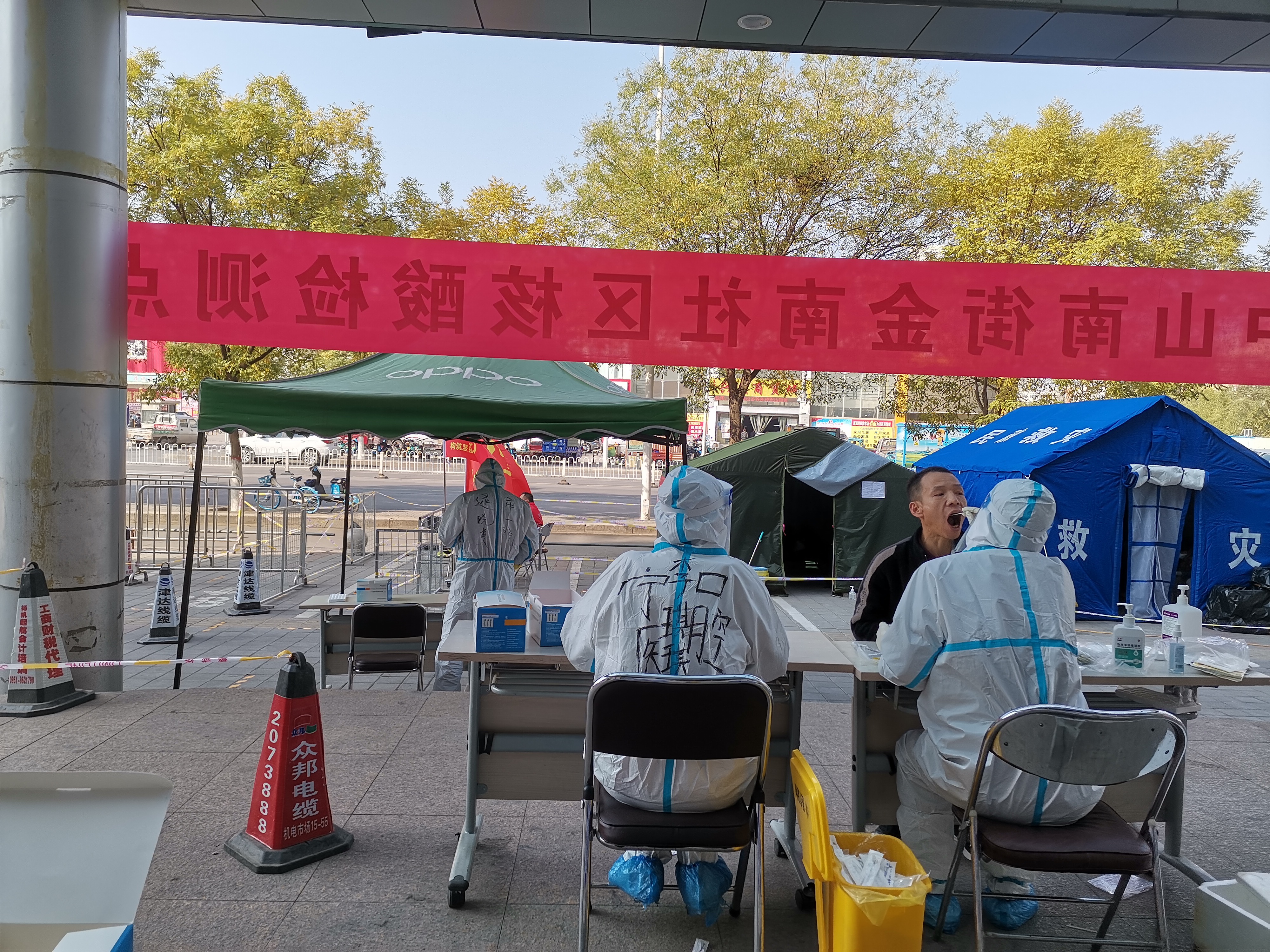 来到我们支援的社区——中山南街金南社区,匆匆吃了晚饭,就穿上防护服,协助医生进行核酸采集。秋天银川的夜晚很冷,但我们想要保护城市的感情是滚烫的。