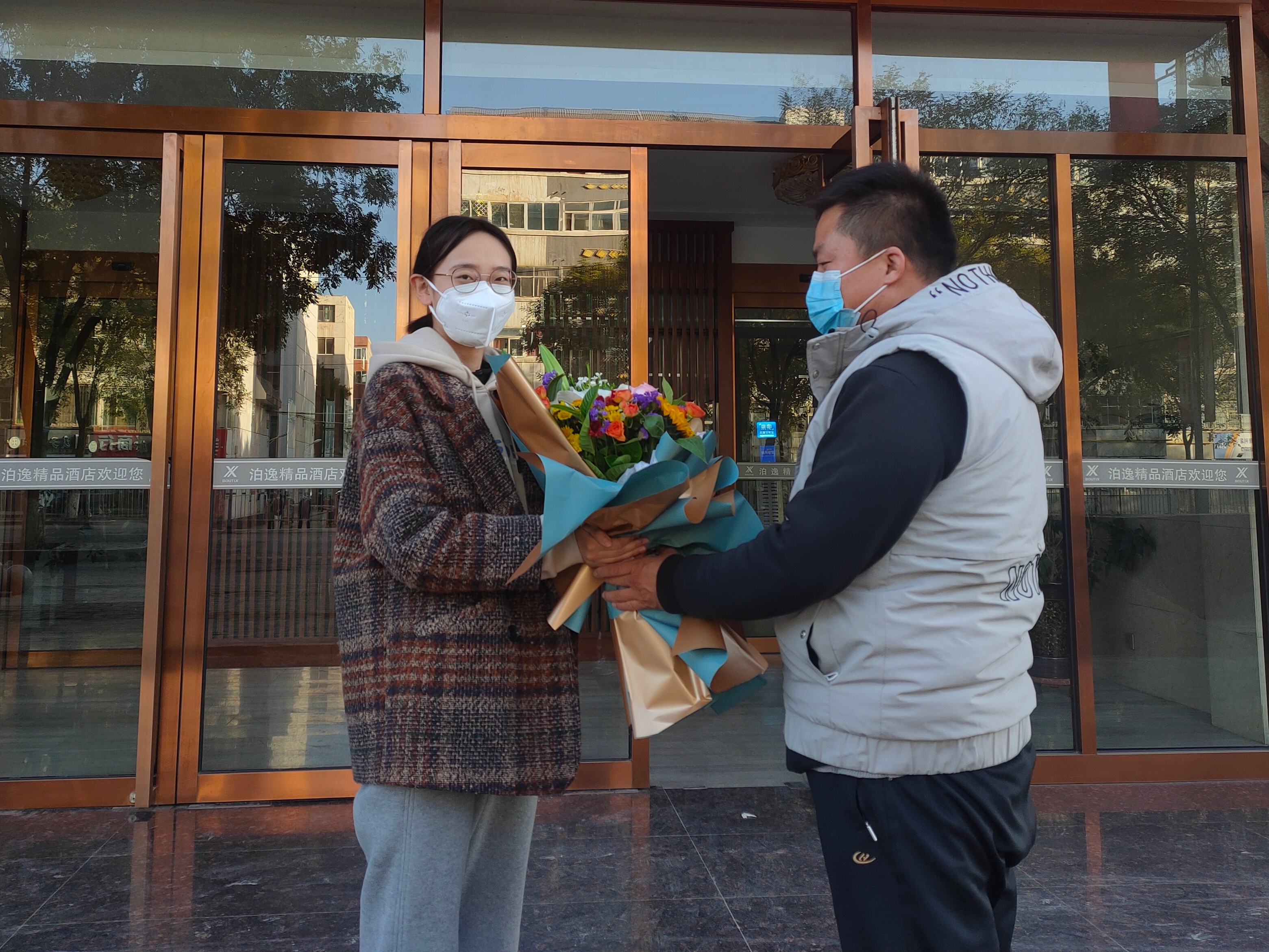(后记:学院得知抗疫的同学过生日后,第一时间通过快递为李琪琪同学送上了生日的鲜花,同行的伙伴们为李琪琪同学过了一个简单而隆重的生日!)