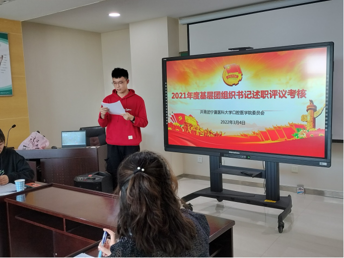 根据共青团澳门十大信誉好的网站委员会《关于开展2021年度基层团组织书记述职评议考核工作的通知》文件精神,为深入贯彻落实基层团组织书记述职评议考核制度,落实全面从严治团要求,3月4日下午,口腔医学院团委召开2021年度基层团组织书记述职评议会。此次述职采取“线上+线下”相结合的形式进行,学院党委副书记王云老师、团委副书记刘莉老师、各班团支部书记、团员代表等参加本次会议。