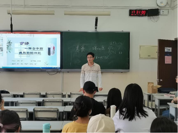 会议伊始,文友民和与会教师为每一位学生们赠送中医学院大学生创新创业产品--含中药提取成分的口红“甘语”。该项目研发团队的主要参与者杨洋和宗涛同学分享了依托“挑战杯”“互联网+”竞赛平台,研发产品的全过程。并号召同学们积极加入到创新创业中来,一起崇尚科学、追求真知、勤奋学习、锐意创新、迎接挑战,成为勇挑时代重担的新时代青年。