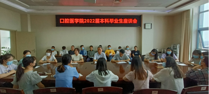 为倾听毕业生心声,进一步实施精准就业帮扶指导,切实解决毕业生在求职就业中遇到的困难,了解毕业生离校前需求,听取毕业生关于学校和学院建设发展的意见建议,6月20日上午我院在口腔医院分场地、分层次、分班级开展2022届本硕毕业生座谈会。党委书记贾立勤、副书记王云、副院长刘锋、乔光伟、研究生办、教学办、学办分会场参加会议,全体本硕毕业生参会。