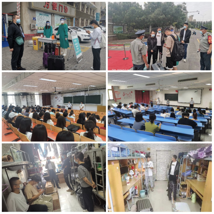 8月27日、28日,学院党委书记贾立勤,副书记王云带领全体专兼职辅导员老师,分别在双怡、雁湖两个校区与学生志愿者按照疫情防控要求认真检查返校学生相关检测证明,做好行李物品消杀工作,帮助学生顺利返校。