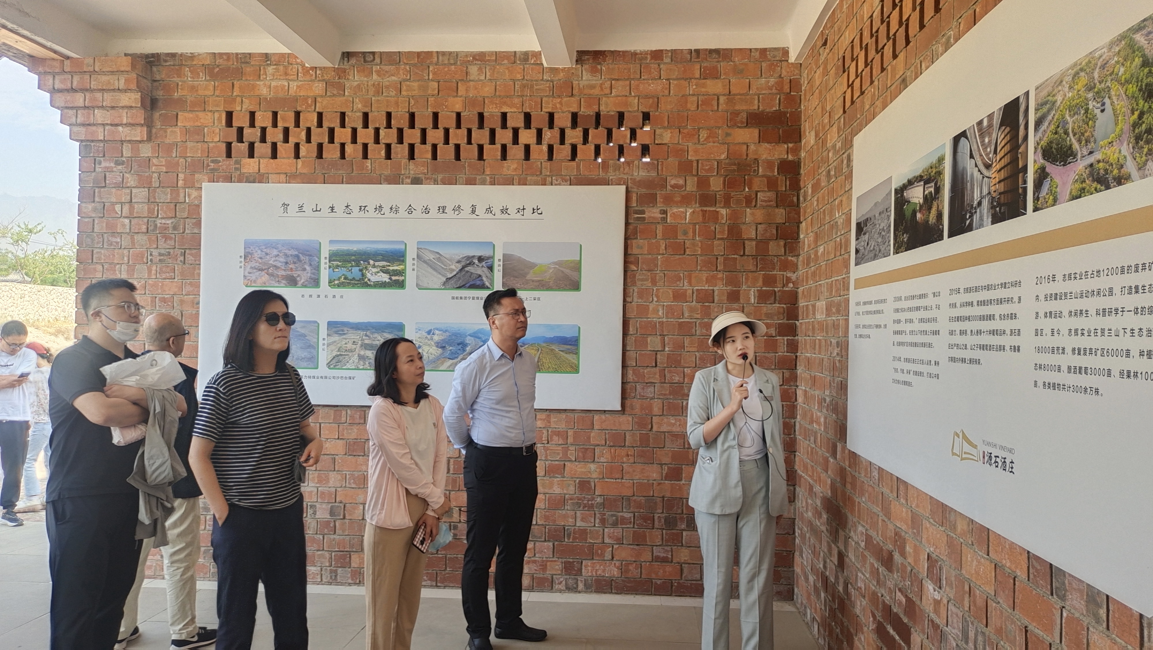 在讲解员的引导下,先后参观了习近平总书记视察过的废弃矿坑、葡萄种植基地和地下酒窖。照片中过去满目疮痍的荒芜,与今日遍野郁葱的生机景象形成鲜明对比,近距离感受到了贺兰山生态修复和宜草宜林环境综合整治示范点的显著成效,了解宁夏葡萄酒产业作为宁夏“六特”产业发展的重要意义,感受宁夏践行习近平总书记两次视察宁夏对葡萄酒产业发展作出的重要指示和明确要求。