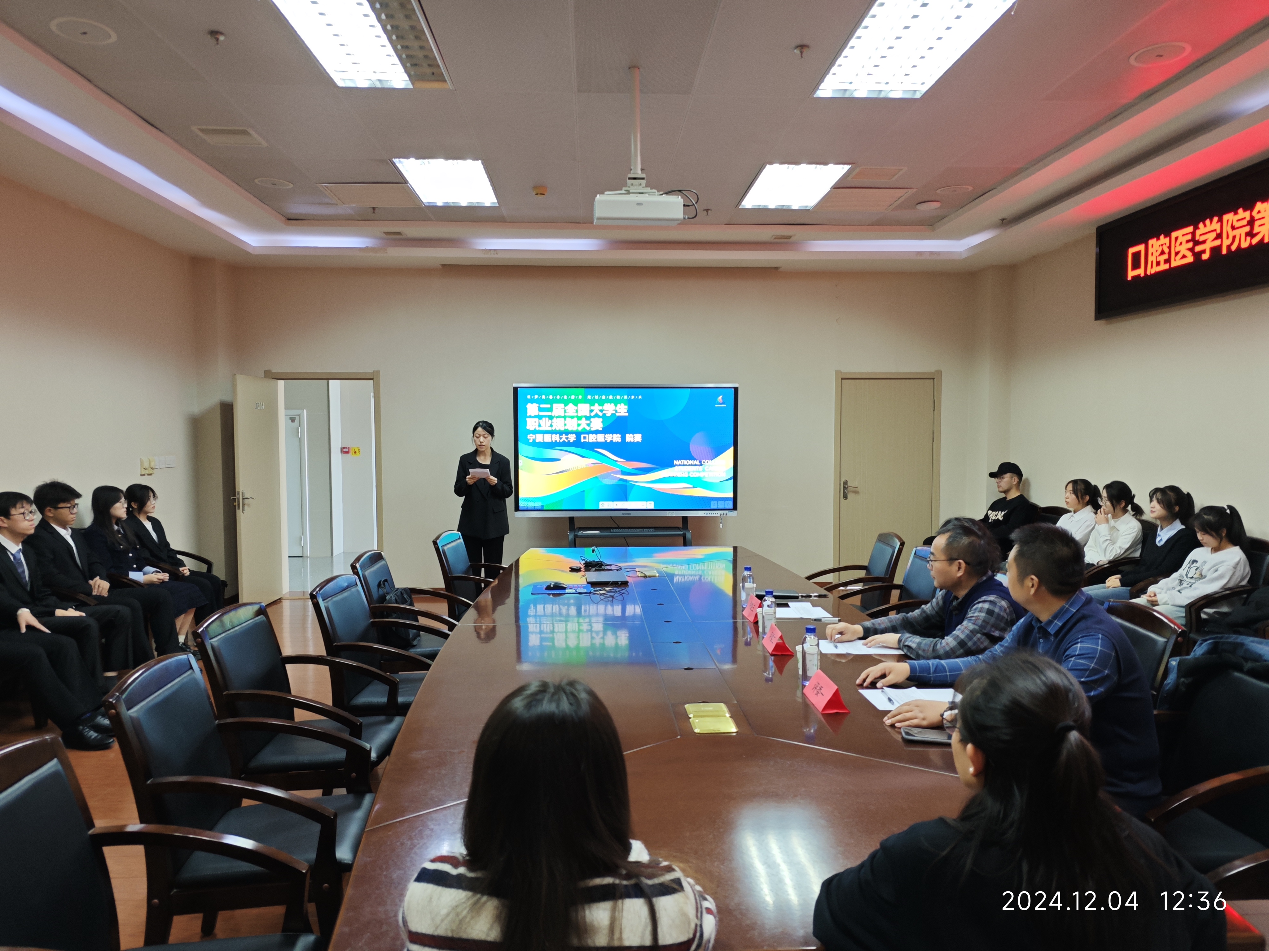 此次比赛荣幸邀请到了国龙医院人力资源部经理王学明老师、银川宝石花医院马军老师、口腔医学院党委副书记王云担任评委。