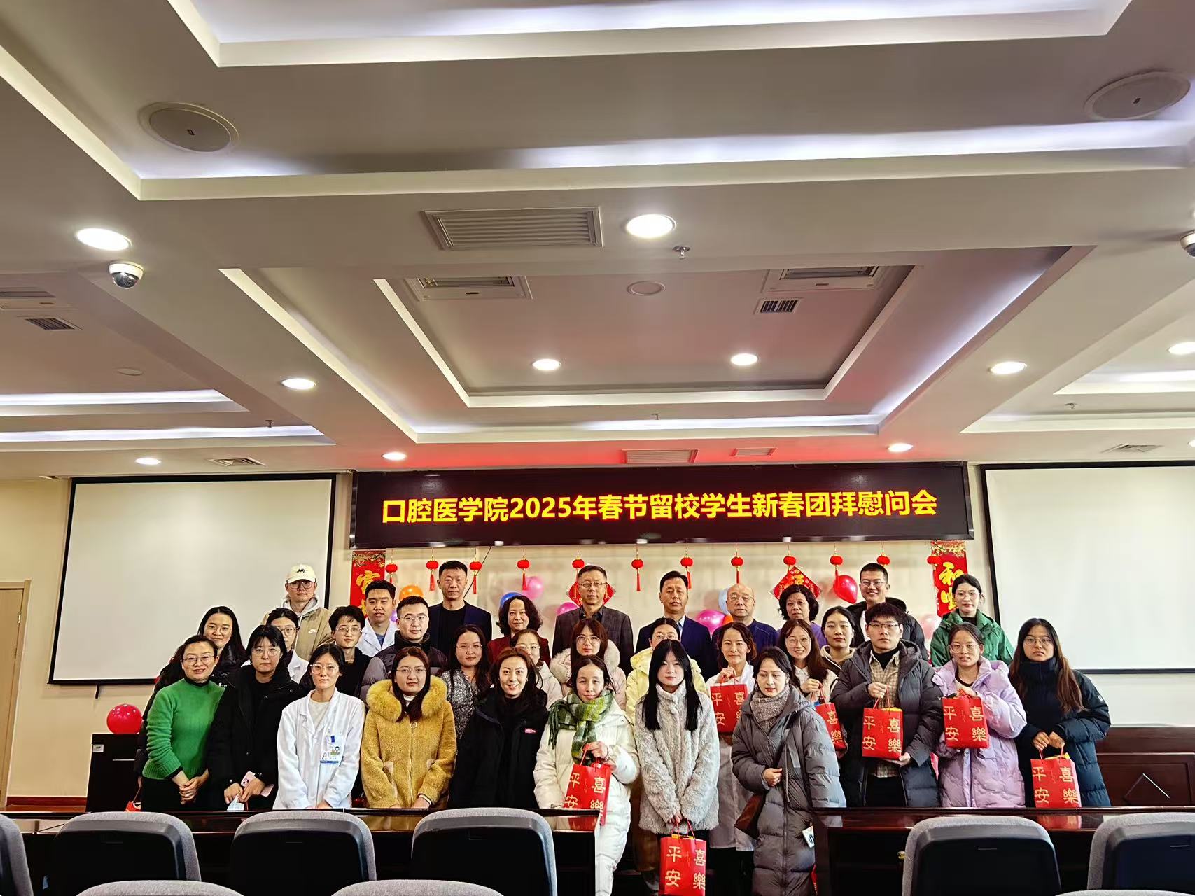 忽如一夜春风来,千树万树梨花开。在这个瑞雪丰年、辞旧迎新的时刻,2025年1月26日下午,口腔医学院举行春节留校学生新春团拜慰问会,为留校的30余名口腔医学专业研究生和本专科生送上了节日的祝福和关怀。