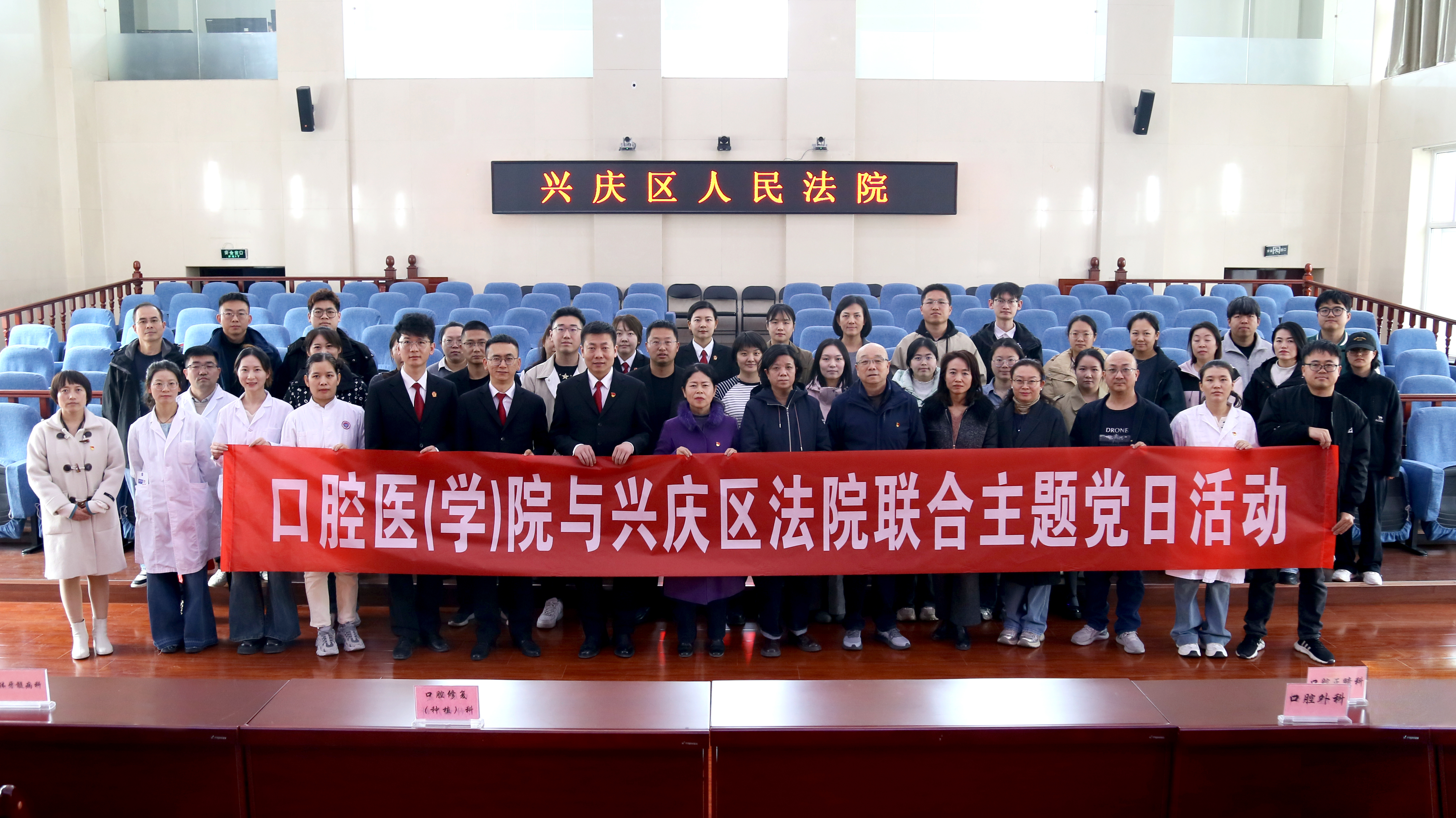 在开展深入贯彻中央八项规定精神学习教育以来,学院党委和口腔医院党总支通过理论学习中心组学习会,认真学习习近平总书记关于加强党的作风建设的重要论述和中央八项规定及其实施细则精神。为使学习理论与实践充分结合,3月27日下午,两院与兴庆区人民法院联合开展了“学规守纪明底线、润心铸魂强担当”主题党日活动。30多名师生代表走进法院,以“法治教育+党建共建+为民服务”三位一体模式打造沉浸式纪律教育课堂。