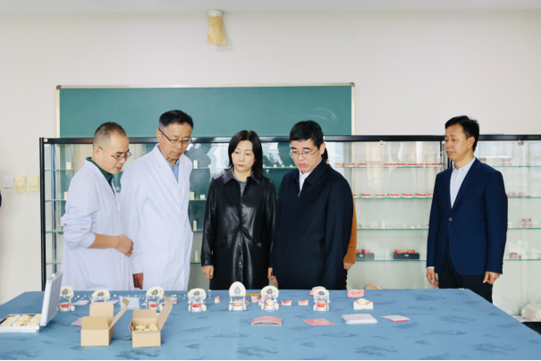 期间,姜怡邓一行参观了口腔医(学)院实验教学中心,实地查看了中心教学场地布局,了解了学生实践教学开展、数字化教学设备等情况。