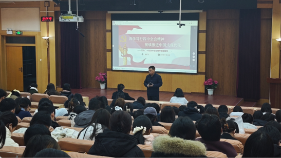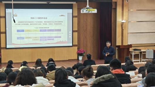为深入学习贯彻党的二十届四中全会精神,准确把握“十五五”时期国家发展战略部署,增强学院师生践行健康中国使命、强化校园安全意识,11月20日,口腔医学院在双怡校区学术报告厅举办“深学笃行四中全会精神 接续推进中国式现代化”专题辅导报告会。马克思主义学院党总支书记张云飞围绕全会精神、国家“十五五”规划及口腔医学行业实践等方面展开深度解读。学院领导、教职工及学生代表230余人参加了讲座。