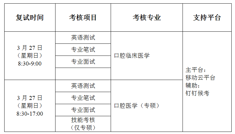 口腔医学院2022年硕招复试时间安排表