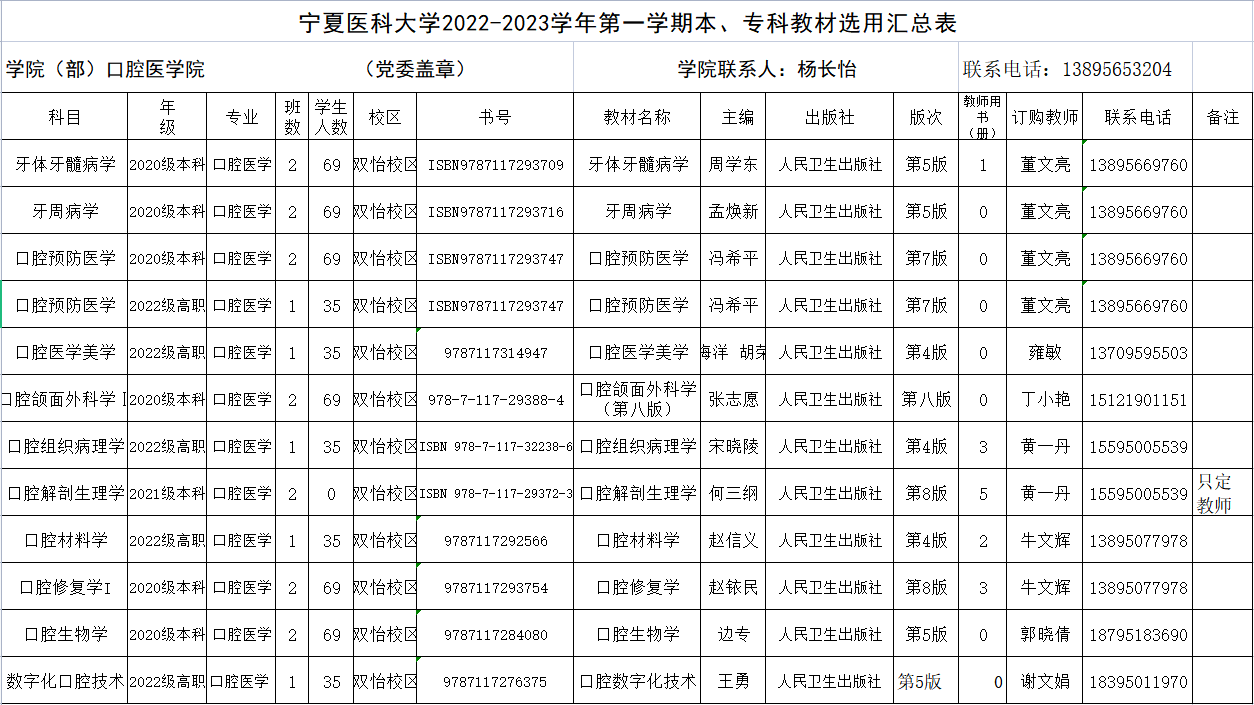 口腔附件二2022-2023学年第一学期本、专科教材选用汇总表.pdf