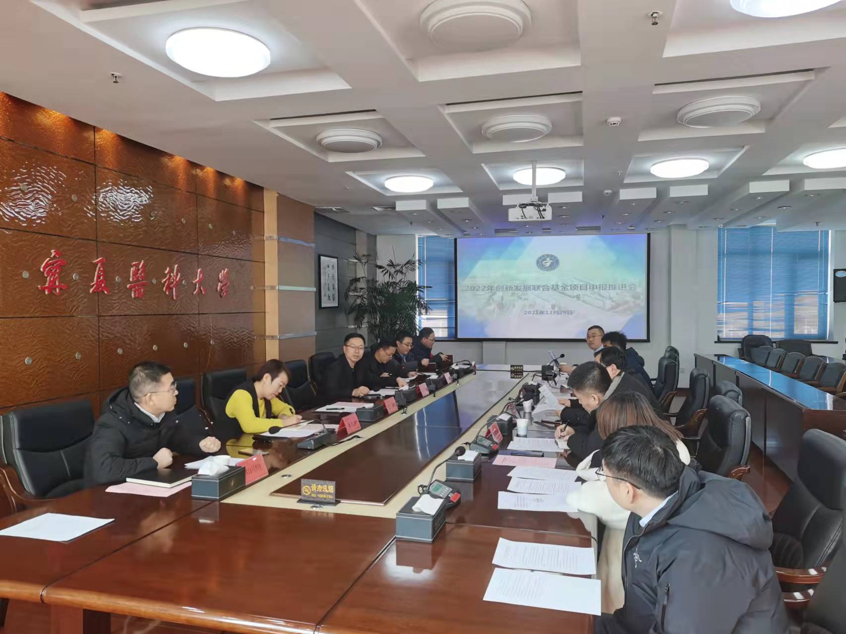 12月29日下午,学校在正德楼226会议室召开2022年度国家自然科学基金区域创新发展联合基金项目申报推进会,学校临床医学院、基础医学院、公共卫生与管理学院、总医院、附属自治区人民医院负责人参加会议。会议由科技处处长韩怀钦主持。
