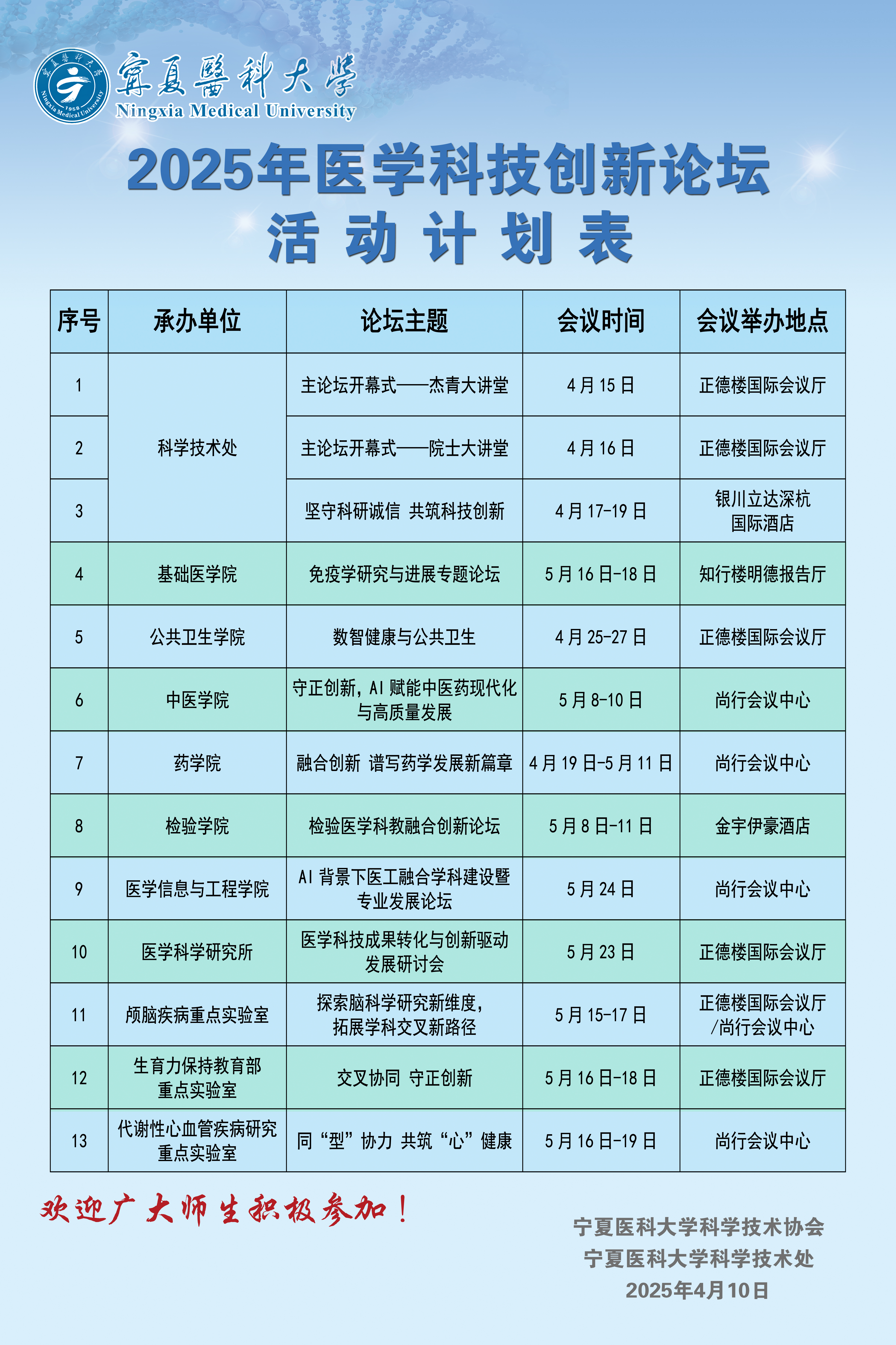 澳门十大信誉好的网站2025年医学科技创新论坛活动计划表