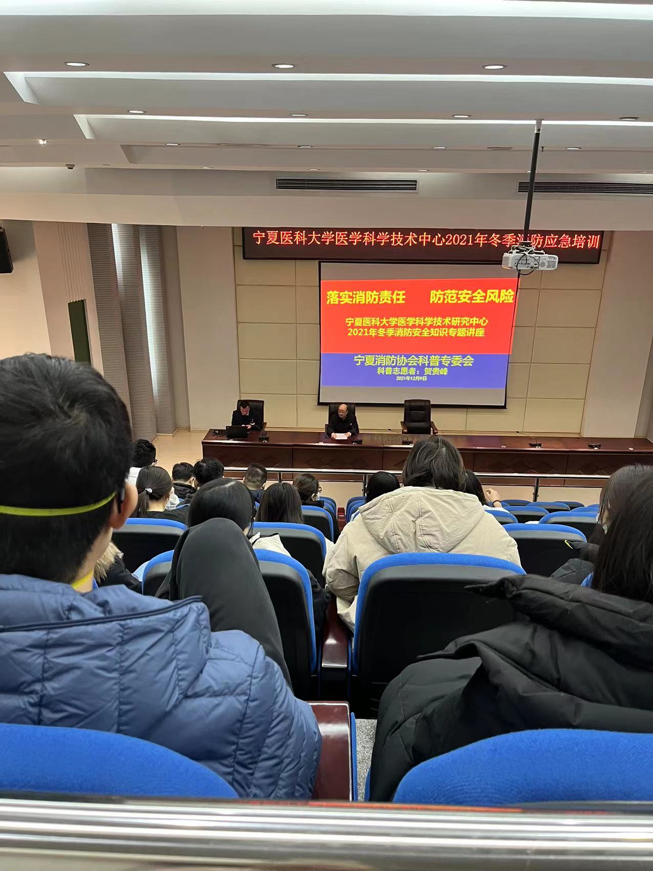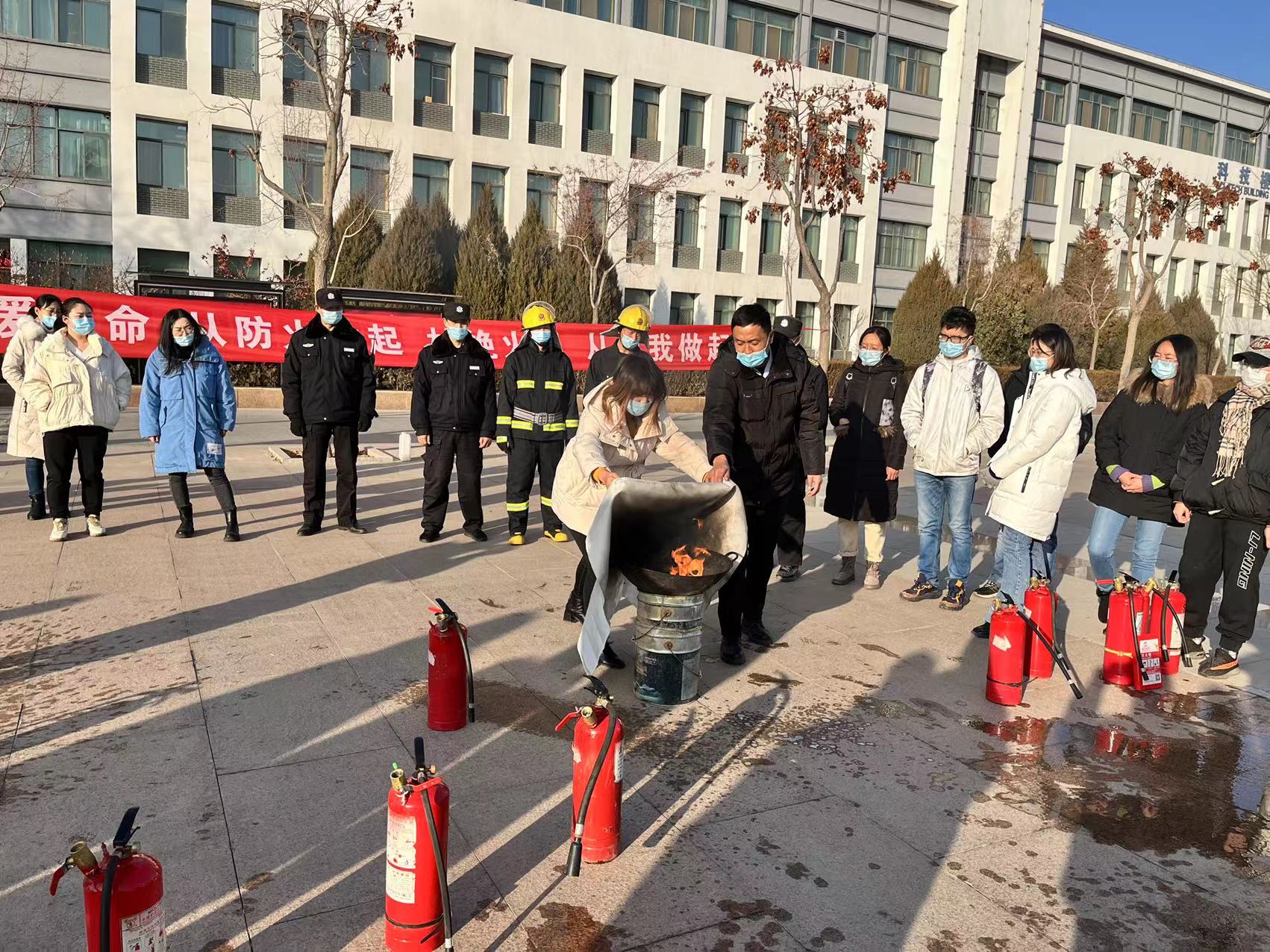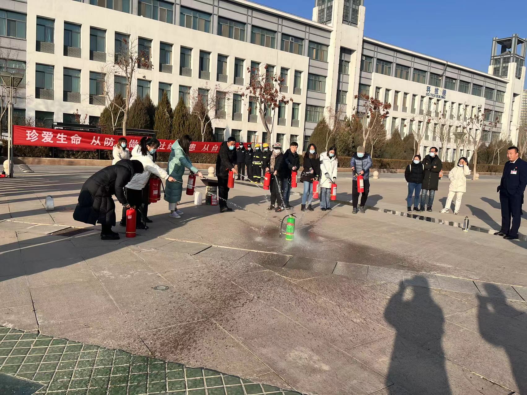 为进一步加强全体教职工及入驻学生的消防安全意识,提高抗击突发事变的能力,科技中心于2021年12月9日下午,组织全体教职工及各实验室入驻学生共56人开展了消防应急培训及演练活动。