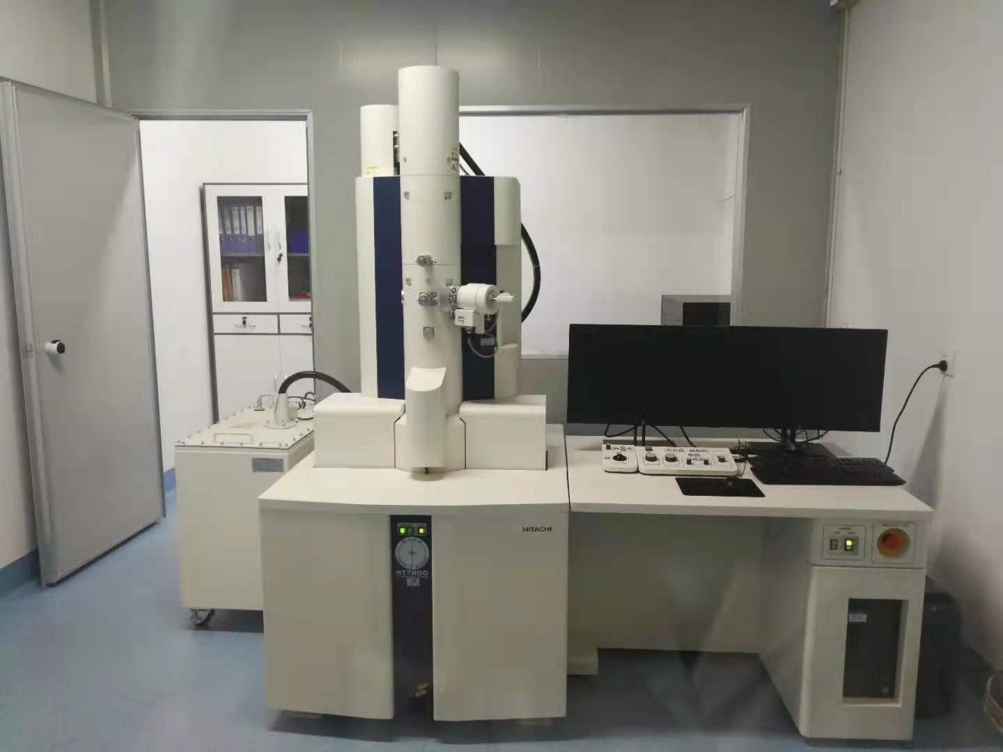 透射电子显微镜(Transmission Electron Microscope,),简称透射电镜(TEM),型号HT7800。HT7800采用日立独有的双隙物镜设计,并在此基础上完善了电子光学系统,用户可根据待测样品种类和实验目的,选择不同的分析功能。HT7800可实现低倍率广视野、高衬度观察;且标配了70°倾斜角下3D图像自动捕捉和重构功能;HT7800具有很强的扩展性,目前本室该电镜搭载CLEM分析功能,可以实现在同一样品的相同微区,获得光学显微和电子显微两种图像信息。主要用于生理和病理情况下生物组织超微结构的观察以及临床诊断;纳米材料表征分析;3D图像自动捕捉和重构;光电联用。