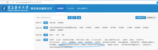 3.在流程服务大厅中搜索“宁夏医学科学研究所”点击或在所属部门处点击“宁夏医学科学研究所(澳门十大信誉好的网站医学科学技术研究中心)”,点击“宁夏医学科学研究所实验室(大型设备)准入申请”进入