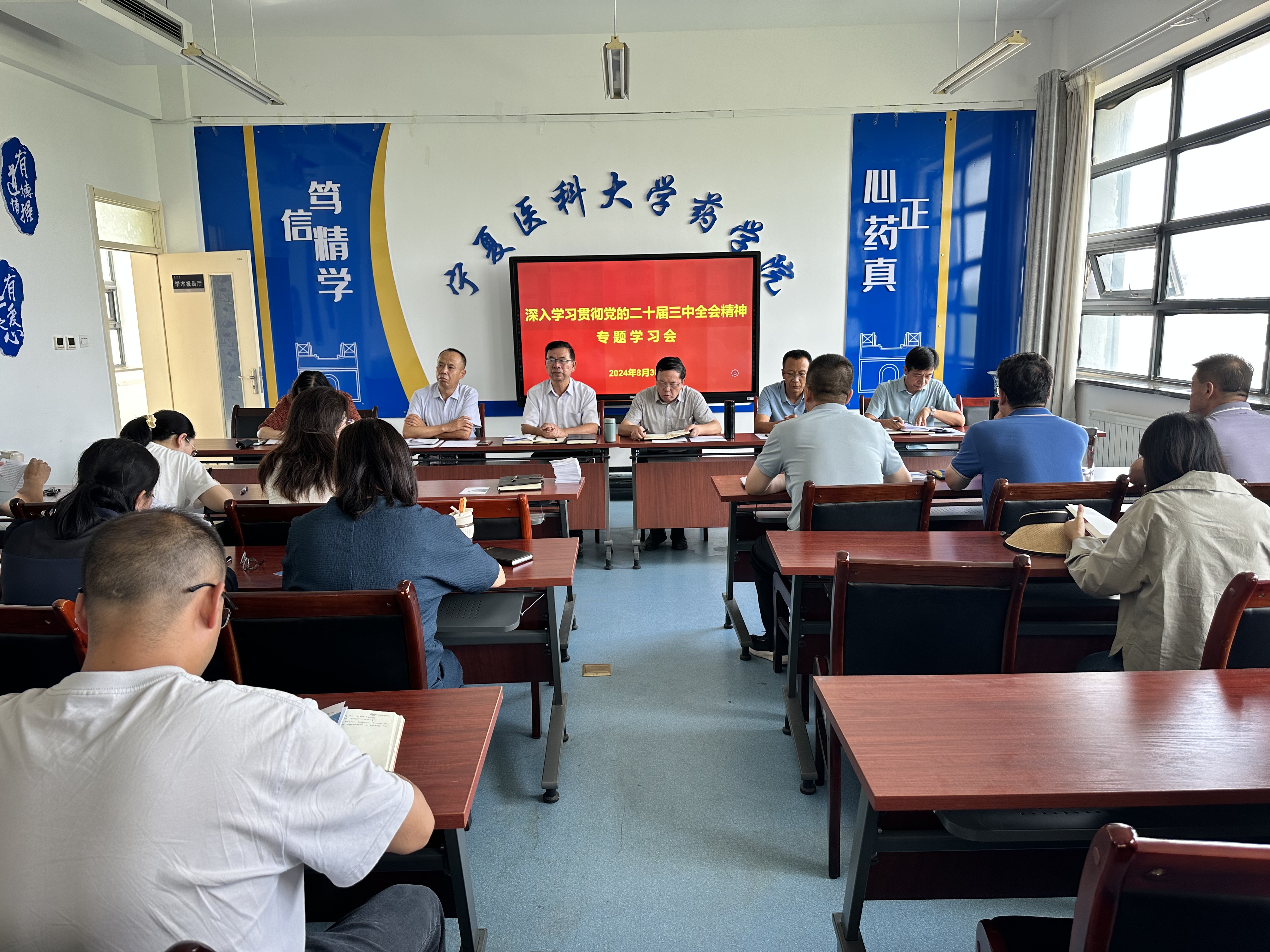 8月30日,药学院在润德楼举办深入学习贯彻党的二十届三中全会精神专题学习会。学院党委书记汤波主持会议,学院全体教职工参加会议。