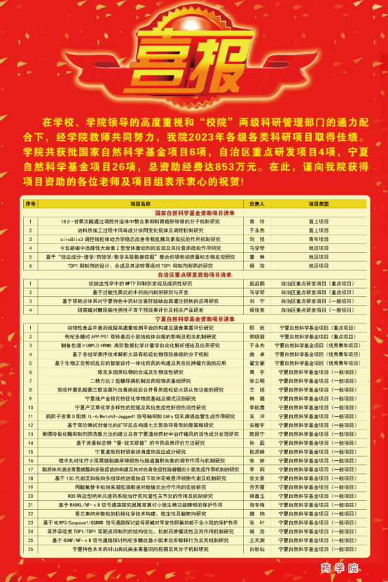 药学院2023年各类科研项目取得佳绩