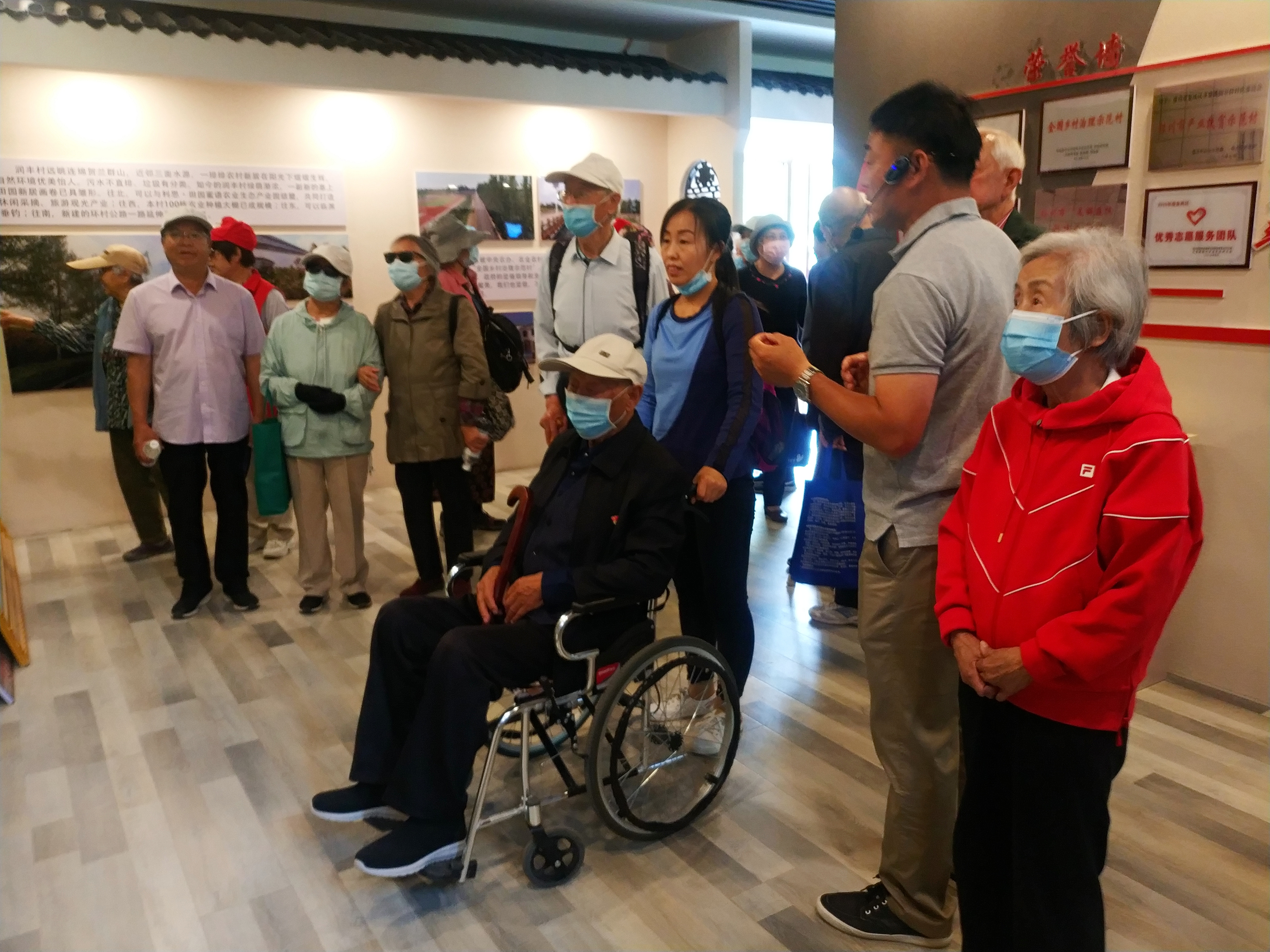 在宁夏利思农业科技发展有限公司王绍兵经理的引领和讲解下,大家参观了银川市金凤区丰登镇润丰村村史村貌展。通过图片,真切感受到润丰村过去与现在天翻地覆的变化。王经理说,润丰村是居住在西吉白崖乡半沟子村327户1338人靠政府救济、交通闭塞、干山苦岭整体搬迁来的农民,金凤区政府积极贯彻落实中央提出的乡村振兴战略,因地制宜地坚决落实“十三五”易地搬迁扶贫规划,推行农民土地流转,推进农村环境整治构建了“一带两园三产四化”体系,现在科技兴农带动了乡村振兴,农民不离家就地就业照顾了家庭和孩子又有了收入,精神文明建设也进一步提高,下一步进一步打造乡村民宿吸引更多的人来旅游休闲,把乡村建设成为一道独特亮丽风景线。