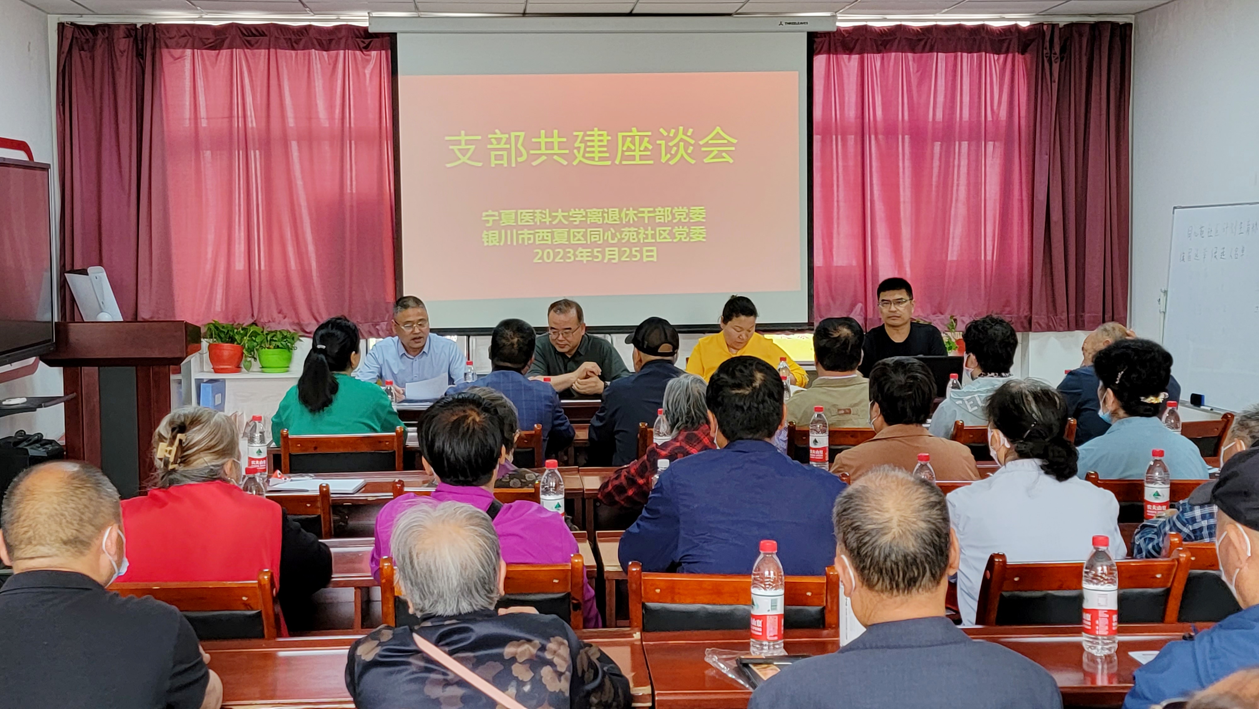 5月25日,澳门十大信誉好的网站离退休干部党委与西夏区同心苑社区党委在同心苑社区开展支部共建,举办了座谈会、专题党课、观摩学习、志愿服务等活动。